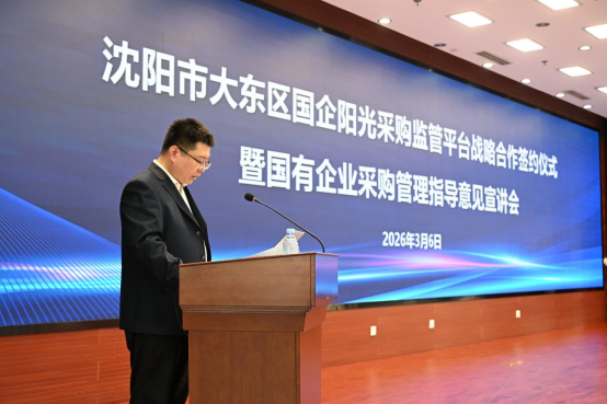 2026年3月6日,沈阳市大东区人民政府国有资产监督管理局(以下简称“大东区国资局”)与沈阳联合产权交易所集团有限公司(以下简称“沈交所”)合作共建大东区国企阳光采购监管平台签约仪式暨《沈阳市大东区区属企业阳光采购监督指导意见(试行)》宣讲会在沈交所召开。作为全市首个与沈交所合作搭建该平台的区县,此举标志着大东区在深化国资国企监管、防范采购领域廉政风险上迈出实质性步伐,为区属国企高质量发展筑牢制度与技术双重保障。辽宁阳光采购平台作为沈交所在各级监管部门的部署和指导下建设运营的“国有企业招标采购公共服务平台”,以全流程智慧交易系统为支撑,打造了“五位一体”的规范化服务体系,助力各级监管部门对所属企业招采行为的穿透式监管。