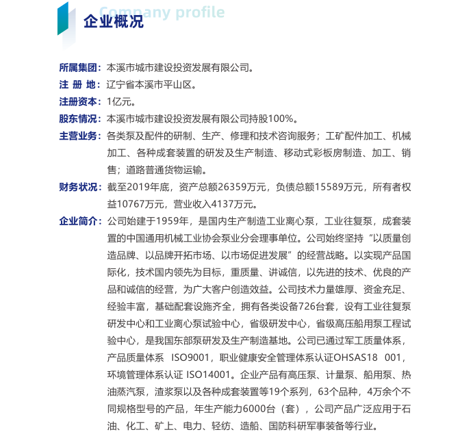 本溪水泵有限责任公司