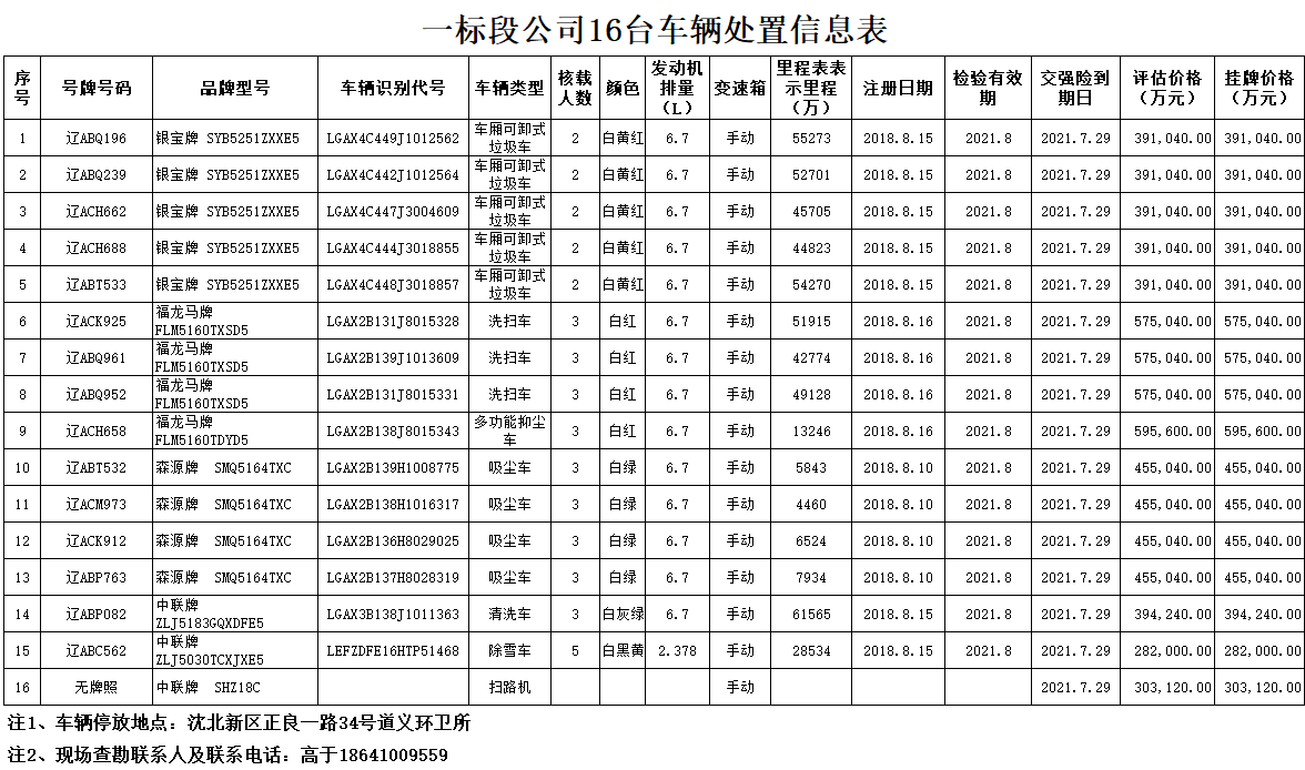 沈阳市沈北新区城市管理局亚行贷款车辆及设备转让(包一)