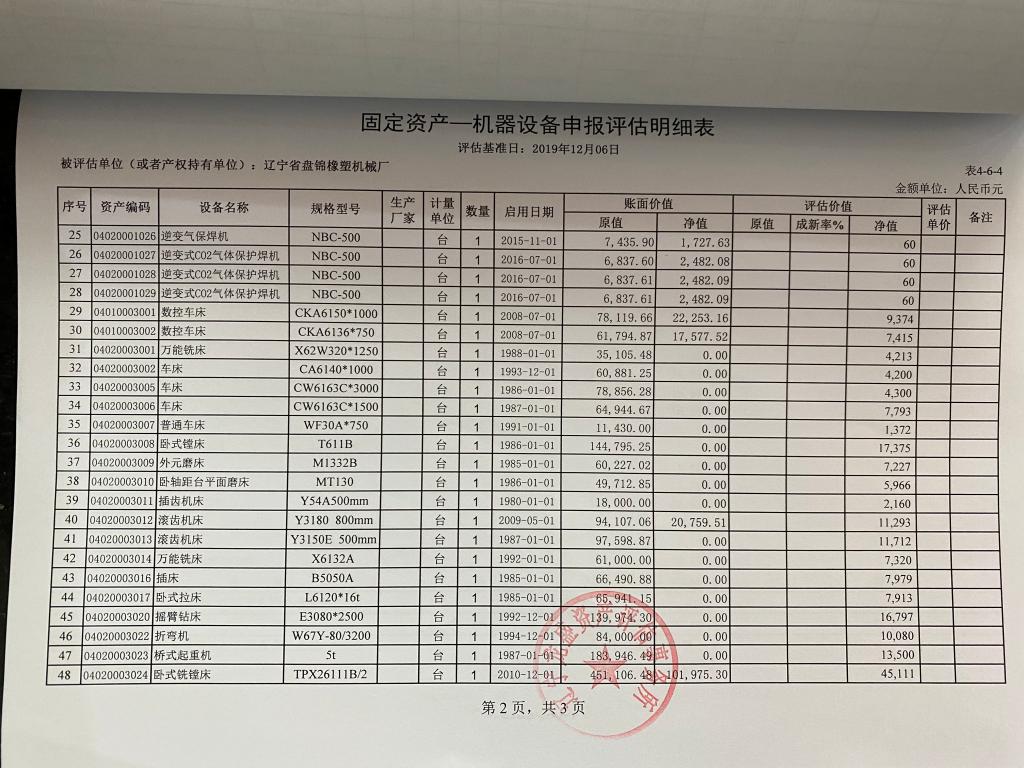 辽宁省盘锦橡塑机械厂66项报废资产现场查勘要求