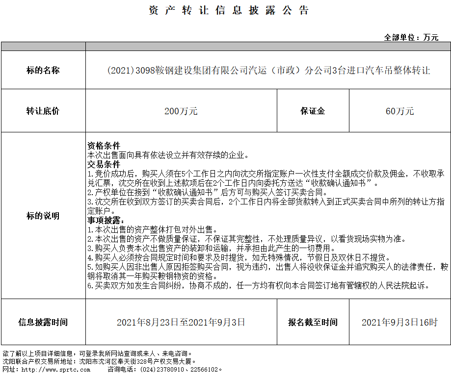 (2021)3098鞍钢建设集团有限公司汽运(市政)分公司3台进口汽车吊整体转让